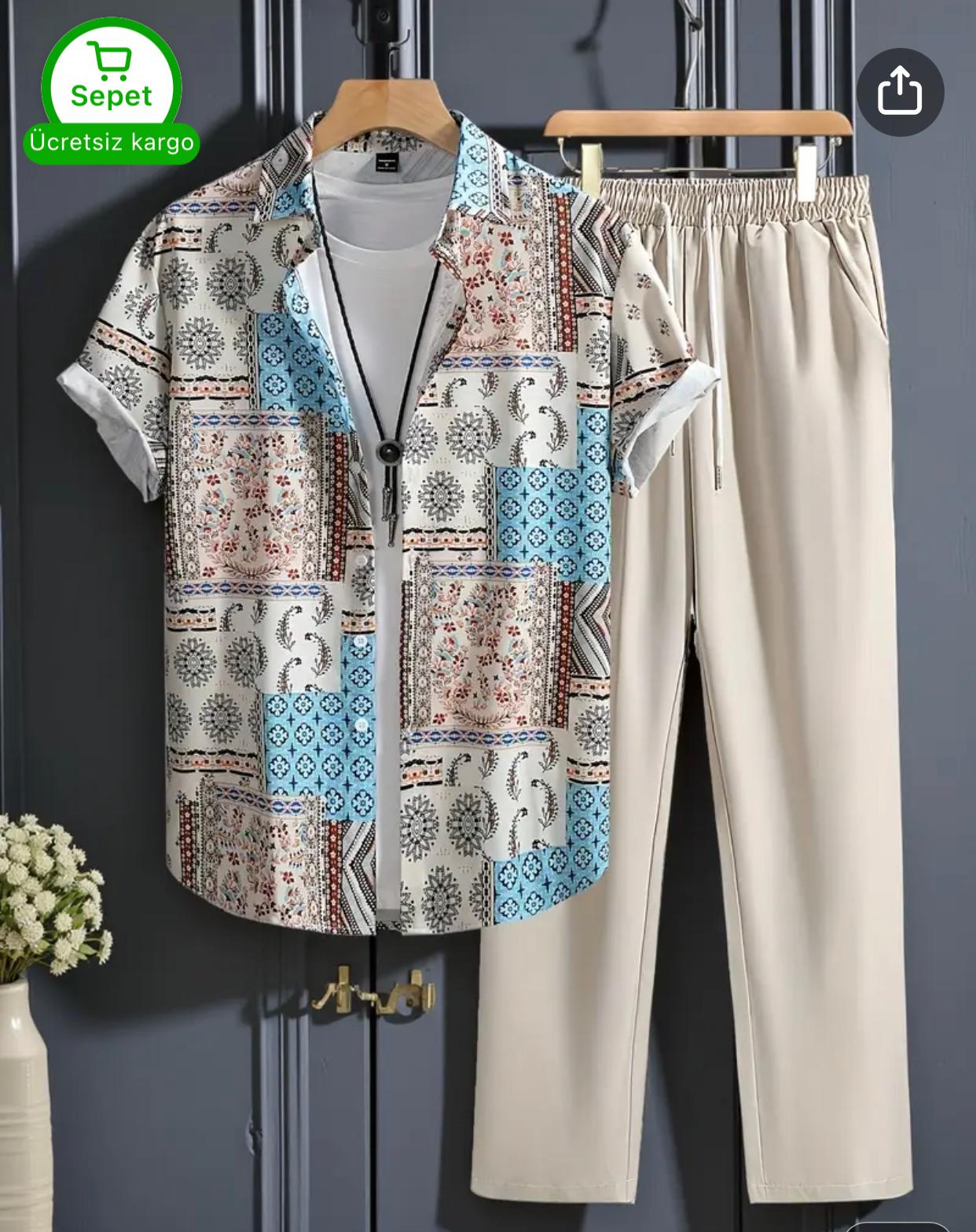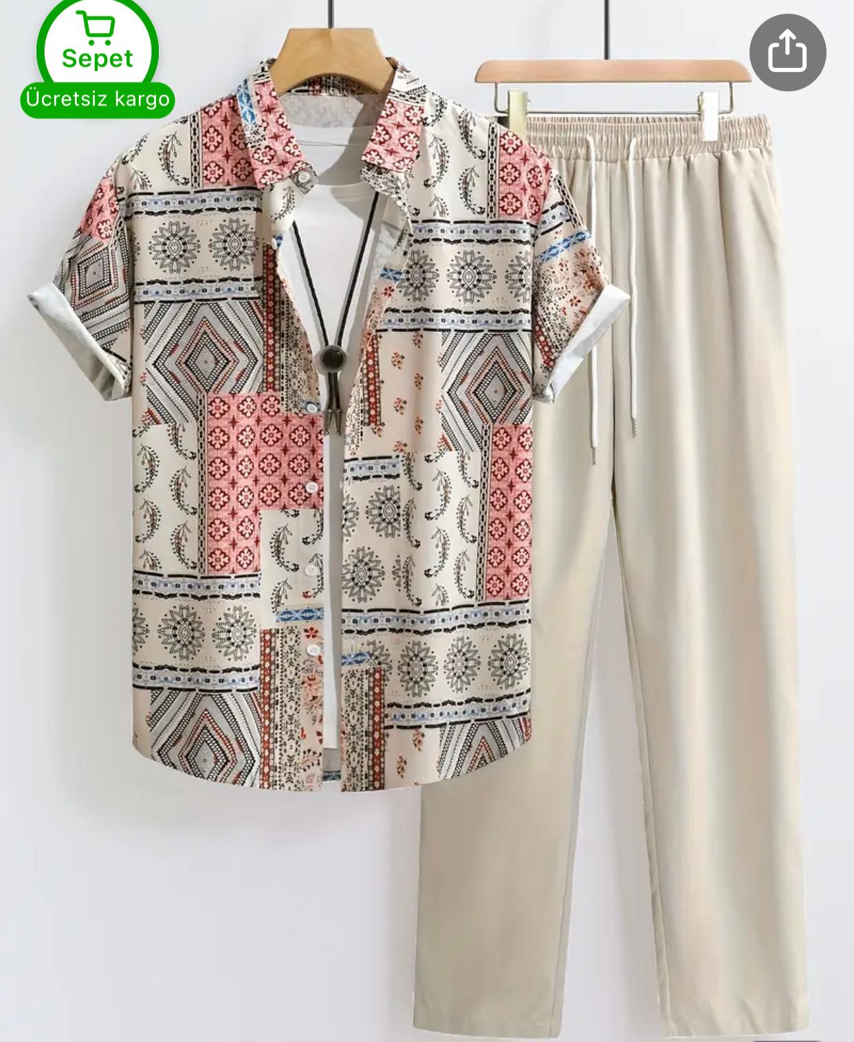 Toptan Yaz Modası Baskılı Gömlek Rahat Kesim Pantolon Takım Model 1 : Ürün Kodu #tkp001